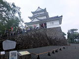| 室町時代に大盛り氏が築いた山城が前身で、その後戦国大名小田原北条氏の居城となってから関東支配の拠点として次第に拡張され、豊臣氏の来攻に備えた城下を囲む大外郭の出現に至って城の規模は最大に達し、前例を見ない巨城に発展した。小田原北条氏滅亡後は、徳川氏の譜代大名大久保氏が城主となった。 明治3年に墟城の方針が出されて、建物は解体された。 天守閣は、昭和35年に市制20周年記念事業として総工費8千万円をかけて復興された小田原市のシンボルです。 江戸時代に造られた雛型や引き図(宝永年間の再建の際に作られた模型や設計図)を基に昭和35年に江戸時代の姿として外観復元され、内部は歴史資料の展示施設となっています。復興に当たっては、「瓦一枚運動」が展開され、多くの市民からの寄付が寄せられました。 3重4階の天守櫓に付櫓、渡櫓を付した複合式天守閣で、地上38.7m、鉄筋コンクリート造、延床面積1822m2となっています。なお、最上階の高欄付き廻縁は復興に際して新たに付けられたものです。 内部には、甲冑・刀剣・絵図・古文書など、小田原の歴史を伝える資料や、武家文化にかかわる資料などが展示されています。標高約60メートルの最上階からは相模湾が一望でき、良く晴れた日には房総半島まで見ることができます。 小田原市では平成18 年に天守閣の高さを基準とした高度規制を行い、天守閣の高さを超える建物の建築を制限しました。 |